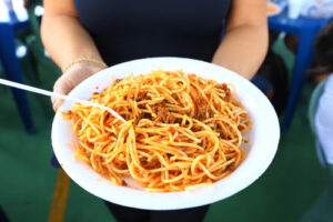 O preparo da massa começa na véspera, quinta-feira (30), a partir das 18h. Já o molho é preparado na manhã de sexta, garantindo a qualidade do alimento. Em sistema de revezamento entre cozinheiras e voluntários, o trabalho segue até a distribuição dos pratos ao público, que também receberá refrigerantes.
