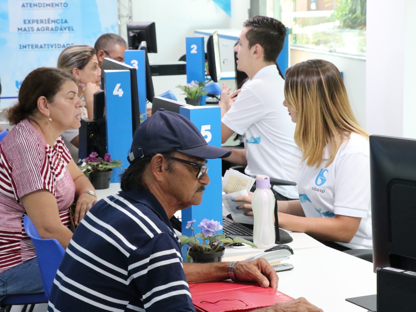 O atendimento presencial está disponível em todas lojas, mediante agendamento prévio pelo site oficial: www.agendamento.sabesp.com.br