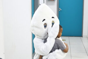 O Zé Gotinha incentivou e aconchegou as crianças | Foto: Cláudio Vieira/PMSJC.