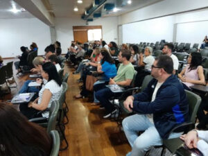 A atividade começou com uma dinâmica conduzida pela equipe psicossocial, promovendo a conscientização sobre o papel das mulheres na ciência e as dificuldades históricas enfrentadas por elas nesse espaço. Em seguida, os atendidos assistiram a uma entrevista em vídeo da própria pesquisadora, na qual ela explica o trabalho desenvolvido ao longo de 25 anos de pesquisa.