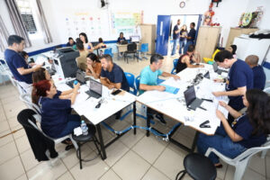 “Que bom poder fazer minha inscrição aqui, tão perto de onde moro”, disse Isabel, que mora com as duas filhas,  de 9 e 3 anos, na casa do sogro.