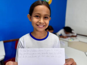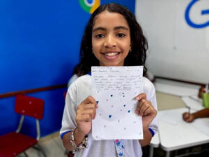 Já Sofia Vitória Dias, de 9 anos, que frequenta a unidade há um ano, destacou a perseverança da pesquisadora. “Eu escrevi para dar parabéns por ela ter alcançado o trabalho depois de 25 anos e pela conquista de salvar muitas vidas”, contou.