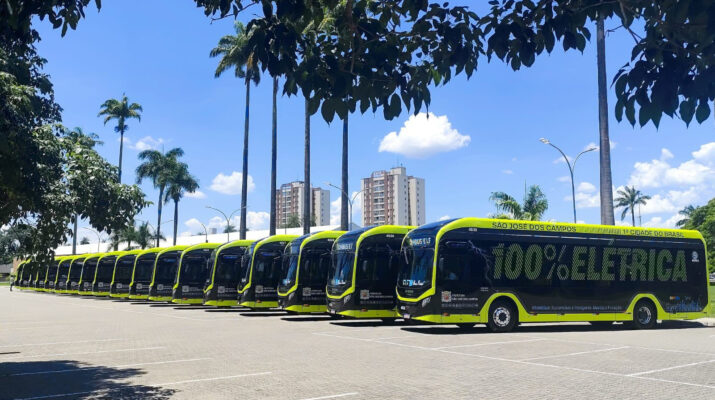 Em 2025, São José dos Campos recebeu 20 dos 400 novos ônibus elétricos que substituirão toda a frota da cidade; aprovação da mobilidade chega a 640 pontos na Indsat – Foto: Divulgação.