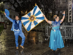 Mesmo com a chuva, o público compareceu à praça Afonso Pena, na tarde deste sábado (24), para acompanhar o anúncio oficial da retomada do desfile das escolas de samba de São José dos Campos após 13 anos.