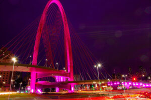 O Arco da Inovação está iluminado de rosa nas noites de outubro | Foto: Adenir Britto/PMSJC.