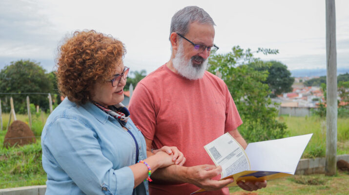 22 proprietários recebem títulos na Morada do Fênix e Santa Maria O casal Mônica da Costa Freitas e José Roberto de Freitas: