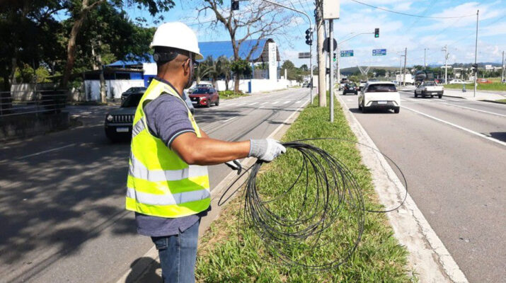 Prefeitura multa EDP por fiação solta e reforça ordenamento O recolhimento da fiação é de responsabilidade da EDP – Foto: PMSJC.