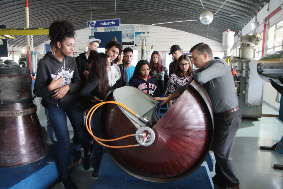 Um dos pontos altos da visita é o foguete VLS-1 (Veículo Lançador de Satélites), símbolo do desenvolvimento aeroespacial nacional, criado pelo DCTA.