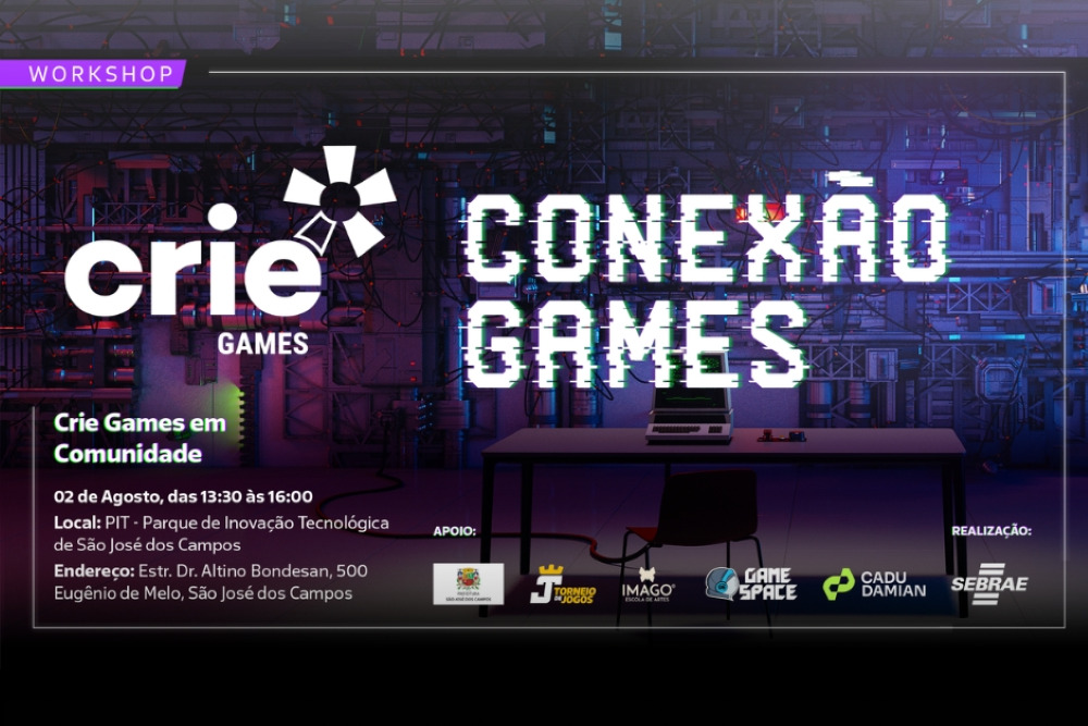 O PIT (Parque de Inovação Tecnológica) de São José dos Campos recebe neste sábado (2) o evento Conexão Games, uma iniciativa do Programa Crie Games, realizado pelo Sebrae-SP.