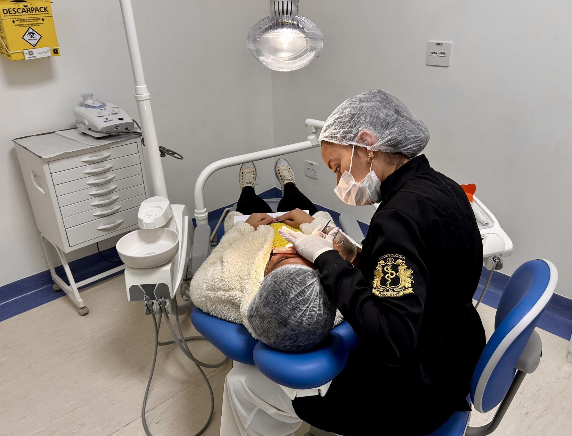 O consultório foi preparado para garantir conforto e qualidade, com cadeira odontológica, aparelho de raio-X, ultrassom, fotopolimerizador e outros recursos essenciais para os cuidados.