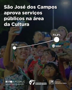 Pesquisa Indsat (Indicadores de Satisfação dos Serviços Públicos), divulgada neste início de 2026, aponta que as ações culturais desenvolvidas em São José dos Campos alcançaram aprovação de 72,7% de população.