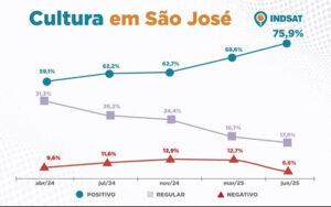A Cultura em São José dos Campos alcançou, entre março e junho deste ano, o maior patamar de aprovação popular dos últimos cinco anos. É o que aponta a mais recente pesquisa Indsat (Indicadores de Satisfação dos Serviços Públicos), divulgada na segunda-feira (16).