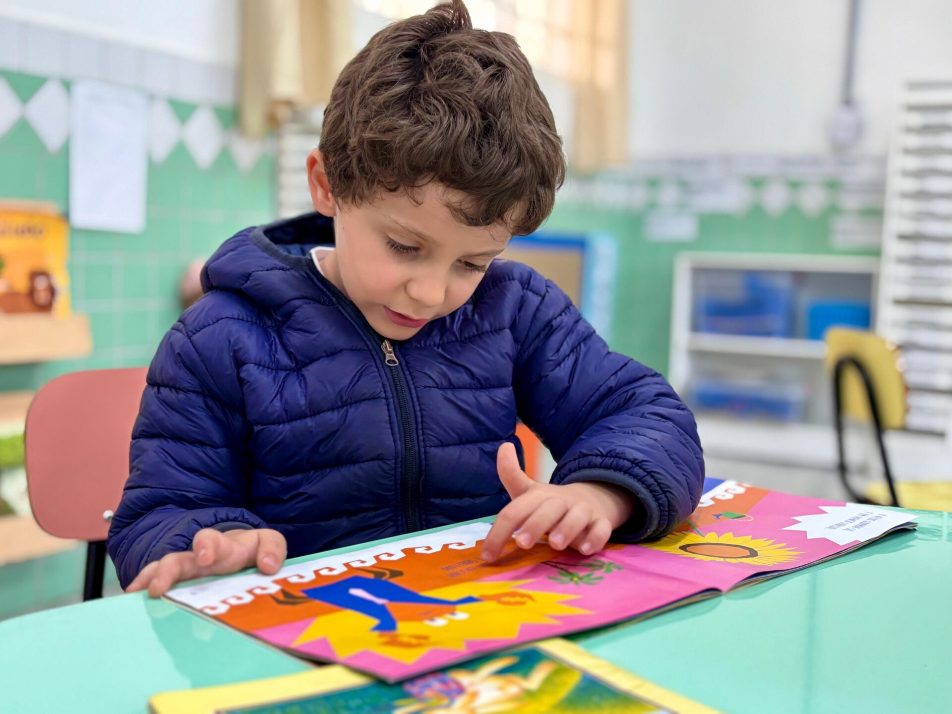 Vicente, aos 5 anos, já revela seu amor pela leitura e pela escrita | Foto: PMSJC.