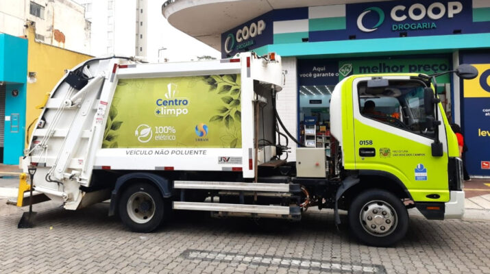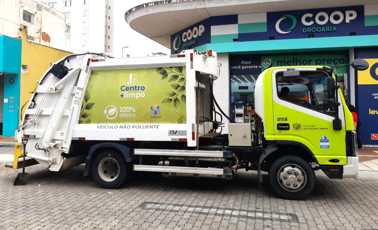 Caminhão da Urbam, 100% elétrico, recolhe resíduos na cidade; ação faz parte do movimento Let’s Do It, liderado pelo movimento Limpa Brasil – Foto: PMSJC.