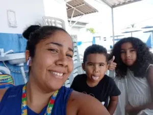 A dona de casa Isabele Ferreira da Silva Andrade, mãe de dois filhos autistas, Pérola, de 7 anos, e Ângelo, de 3 anos. Isabele Ferreira/Arquivo Pessoal.
