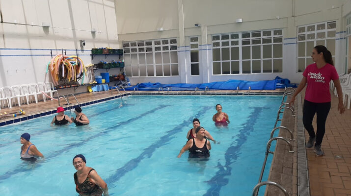 As aulas de hidroginástica estão entre as principais atrações das Casas do Idoso; neste mês, há atividades para todos os gostos com as programações de férias – Foto: PMSJC.