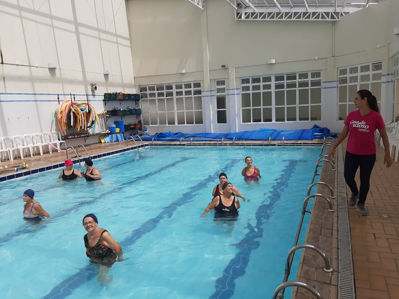 E, neste calorão, as piscinas fazem muito sucesso, principalmente com as aulas de hidroginástica.