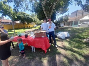 “Aproveitamos a oportunidade para deixar registrado aqui, os nossos agradecimentos a todos que contribuíram direta e indiretamente para o sucesso da nossa festa das crianças, garantindo assim, espaço para o próximo ano. Muito obrigado!” Joana Mello, Maurício e Francisco, organizadores do evento.