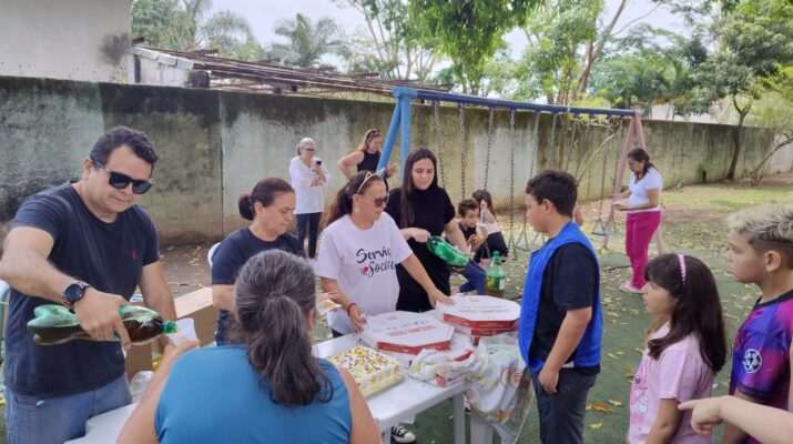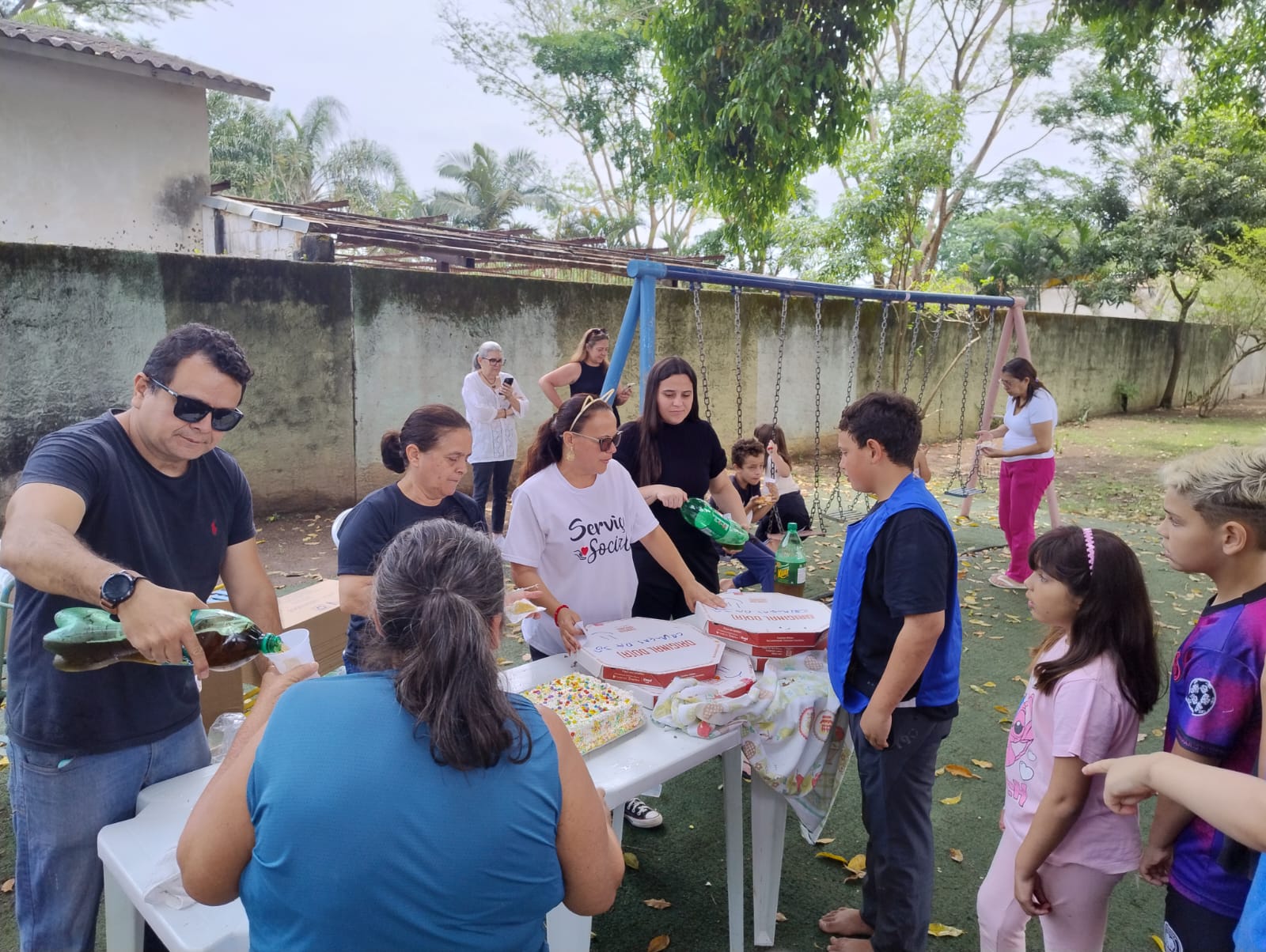 As crianças se divertiram numa manhã com brinquedos infláveis, jogos, pipoca, algodão doce, cachorro quente, bolo, refrigerantes e muita animação.