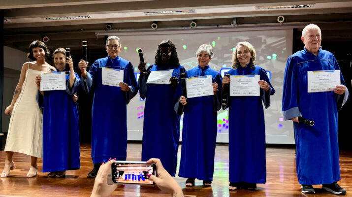 “O curso se transformou numa verdadeira família, numa rede de afeto tão forte que muitos até pediram para ser ‘reprovados’ só para ficar mais tempo juntos. Tenho um orgulho enorme de ver como vocês enfrentaram frio, chuva, perdas, doenças e tantos desafios e ainda assim permaneceram firmes, presentes e sorrindo. A tecnologia nos uniu, mas foram vocês que deram sentido a tudo”, destacou.