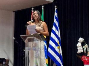 A paraninfa da turma, professora Márcia Medeiros, relembrou com emoção a origem do projeto e o caminho percorrido pelos alunos.