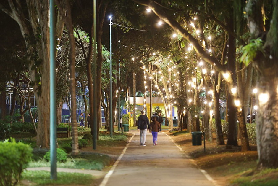 No Natal vai continuar alegrando o caminho de quem visita o parque, que possui 32 árvores, quiosques e as portarias todas iluminadas para a celebração com o Papai Noel.