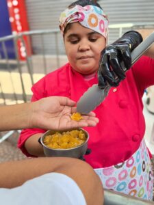 Além de assistirem à preparação do prato ao vivo e participarem da degustação gratuitamente, as pessoas que passarem pelo local também poderão curtir o som de Isabel Vega, com sua apresentação “Brasilidades e Outros”. A artista por meio de voz e violão interpreta músicas da Bossa Nova, MPB, samba e internacional.