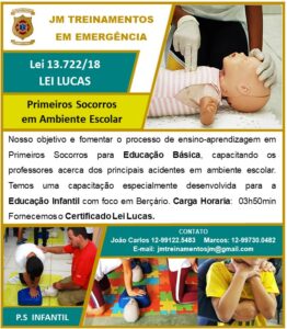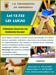 Previsão Legal: em 2018, o Congresso Nacional, sancionou a Lei Nº 13.722/18 denominada como Lei Lucas o qual obriga as escolas, públicas e privadas, de educação infantil e básica a fazerem curso de capacitação de professores e funcionários em noções básicas de primeiros socorros, no intuito de salvar vidas e evitar que possíveis incidentes terminem em tragédias.