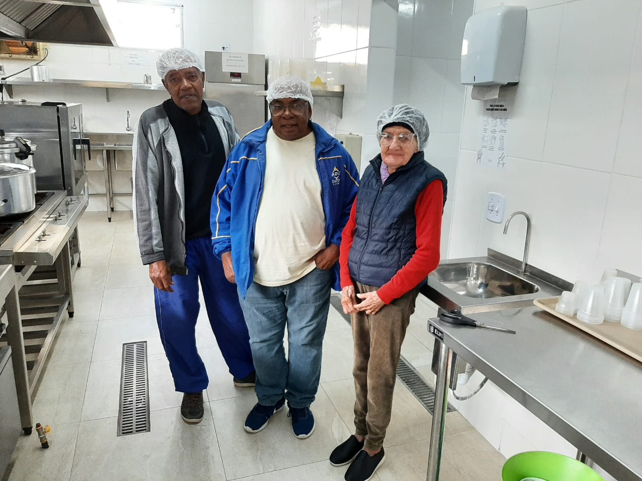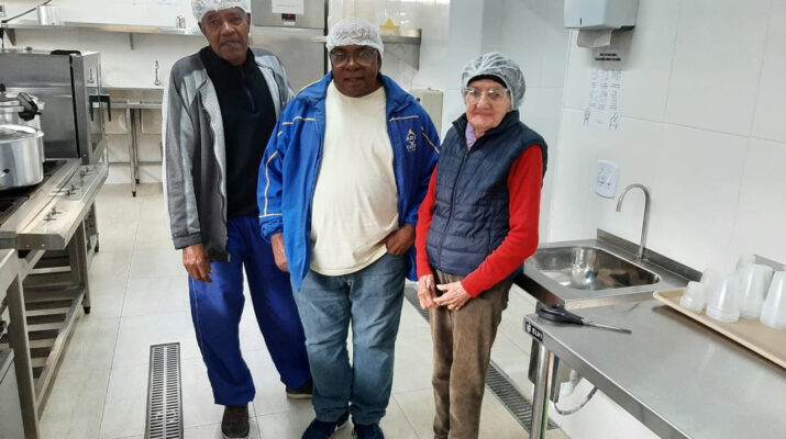 Seu Pedro, seu Onésimo e dona Maria na cozinha da ILPI: sabores, saberes e histórias de vida que emocionam – Foto: PMSJC.