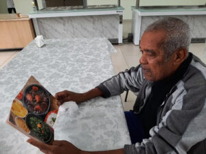 Onésimo Cosme Leandro tem 68 anos e está na ILPI desde 2020, quando foi instituída pela Prefeitura. Ele participou do livro com receita de arroz carreteiro, que é sua especialidade e o prato que mais gosta de comer, junto com feijão tropeiro.