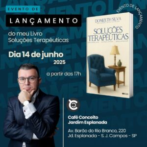 O dia 14 de junho marcado pelo lançamento do livro Soluções Terapêuticas no Café Conceito, situado na Avenida Barão do Rio Branco, 220, Jardim Esplanada em São José dos Campos, a partir das 17 horas.