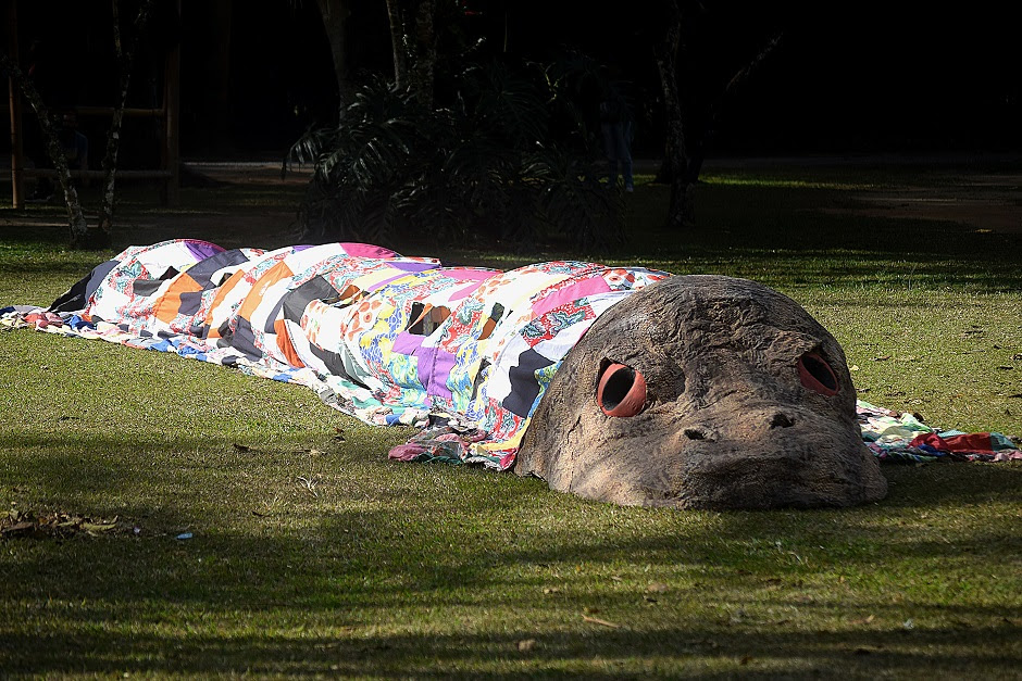 Uma cobra cenográfica fará parte do percurso dos alunos durante a programação do Mês do Folclore que começa nesta terça – Foto: Divulgação.