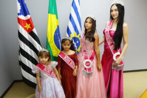 As misses Alice de Moura Carvalho (mini), Laura de Lima Alves (infantil), Maria Luiza Alves Bernardi (mirim) e Ana Rafaelle Magalhães (juvenil), acompanhadas de mães, madrinha e organizadoras do evento, conheceram as instalações da Prefeitura, interagiram com servidores, munícipes e autoridades.
