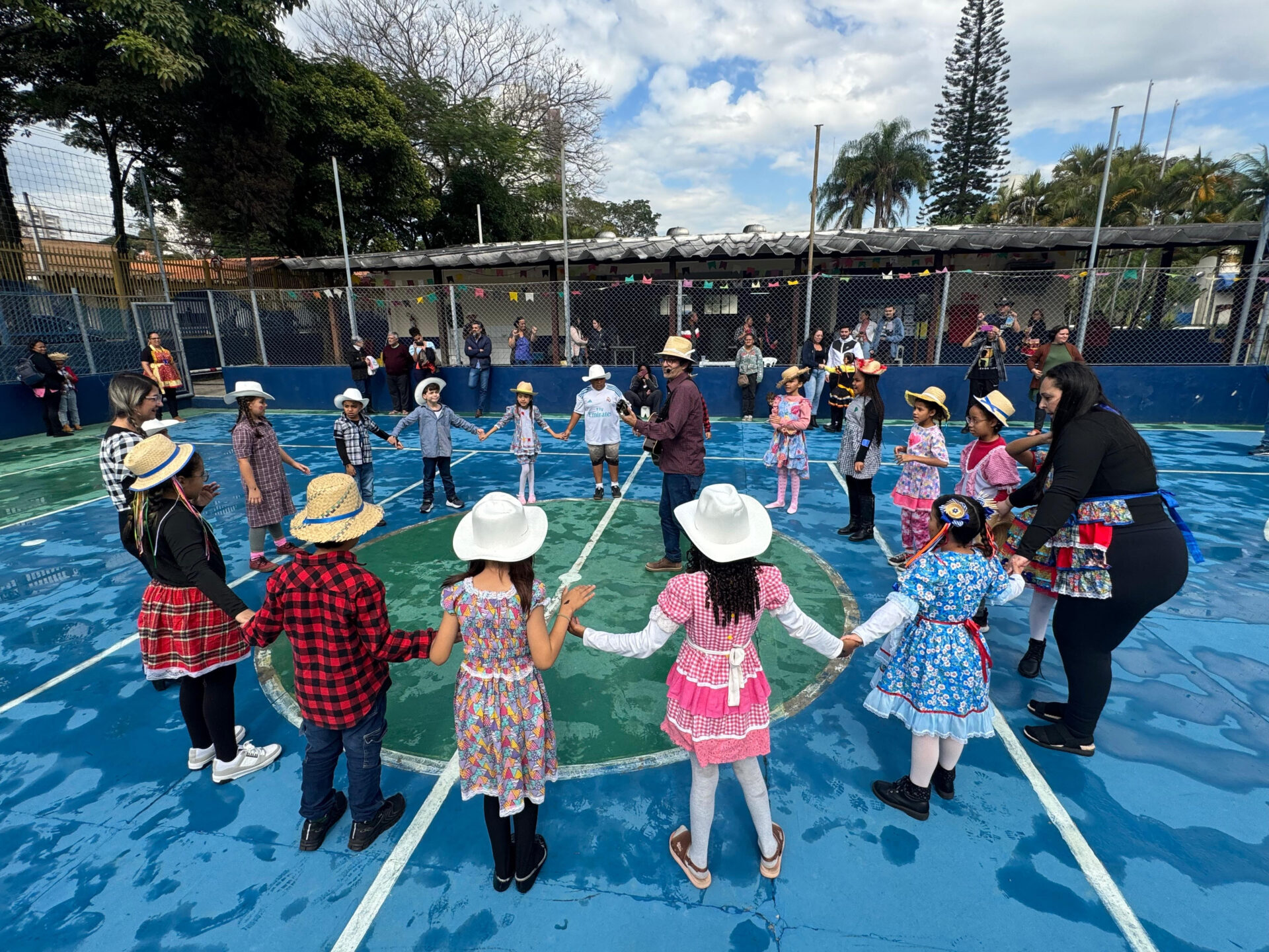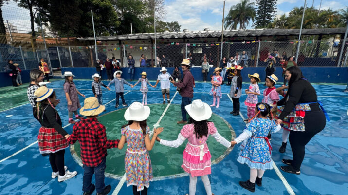 Verônica participou do teatro e da dança da quadrilha junina e deixou o pai orgulhoso. “A gente percebe como é bom para as crianças esse lado artístico, auxilia na coordenação, decorar e executar as falas, músicas, danças, é tudo muito importante para o crescimento”, disse o motorista Marco Antônio Andrade.