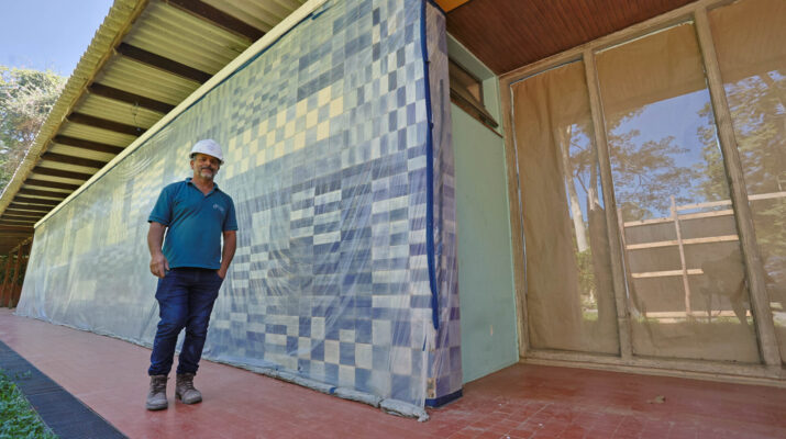 O processo para definição de cores é criterioso e visa garantir as tonalidades originais da residência, projetada pelo arquiteto Rino Levi na década de 1950 para o industrial Olivo Gomes, da Tecelagem Parahyba.