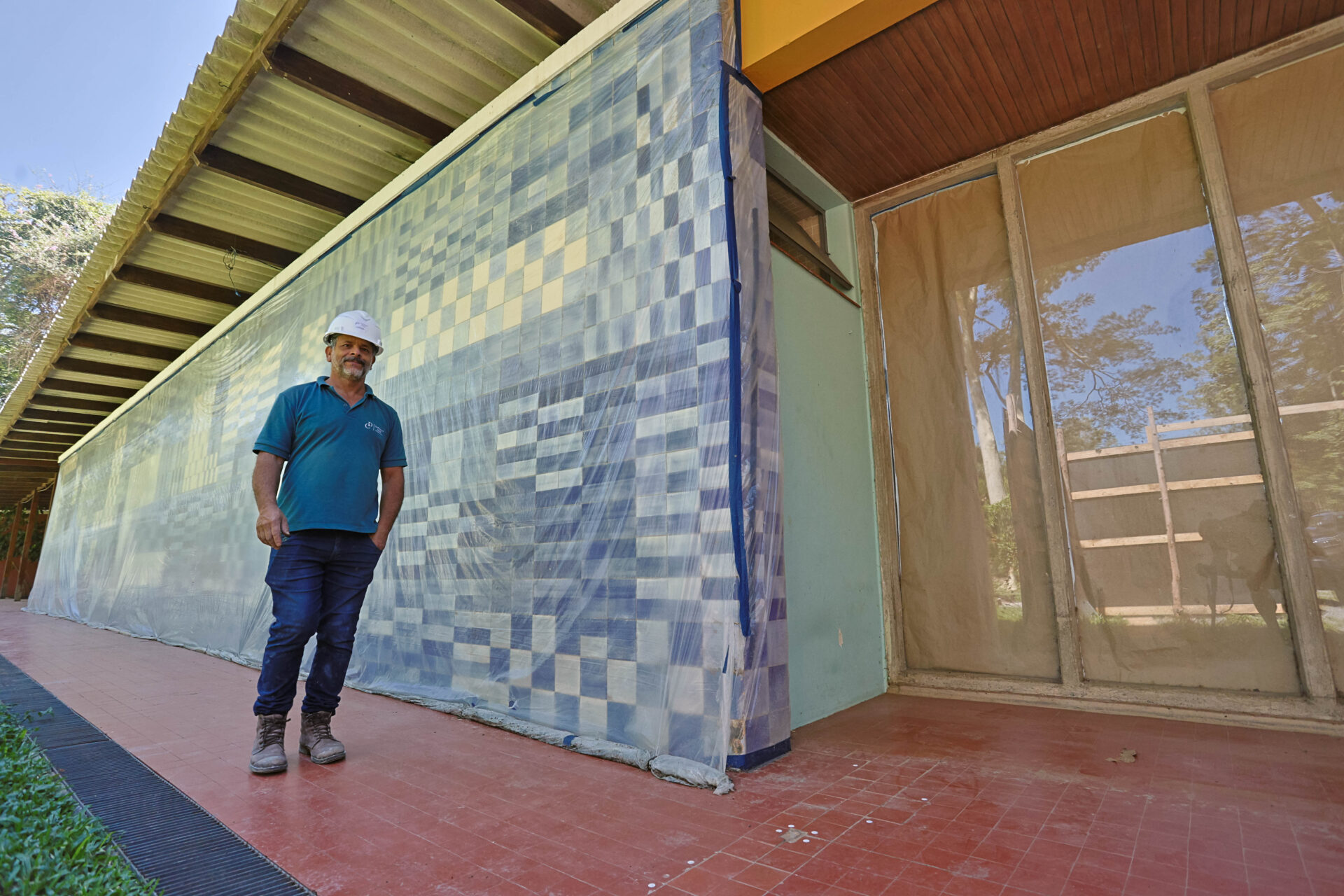 O estágio atual da obra inclui restauro das janelas e esquadrias, reforma do forro e definição de cores das paredes com a equipe de arquitetura.