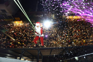 No dia 11, o Papai Noel chegou de rapel em um shopping do centro agitando a multidão | Foto: Cláudio Vieira/PMSJC.