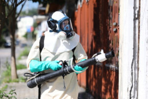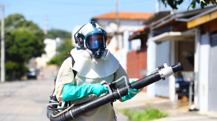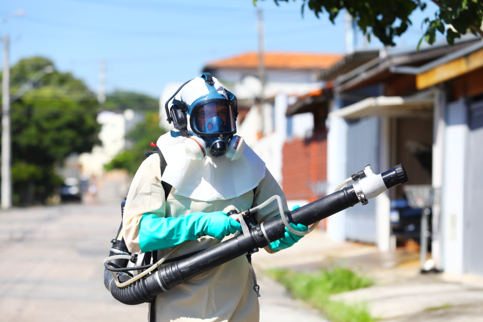 Trata-se da nebulização costal, aplicação de inseticida realizada dentro dos imóveis para eliminar os mosquitos adultos e interromper o ciclo de transmissão da doença e de outras arboviroses.
