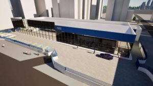 Ilustração digital da fachada da nova sede do AME.