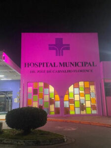 A fachada do Hospital Municipal está iluminada com a cor rosa | Foto: Divulgação/SPDM.