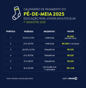 Confira os demais prazos do calendário do Pé-de-Meia 2025 para o EJA, relativo ao primeiro semestre.