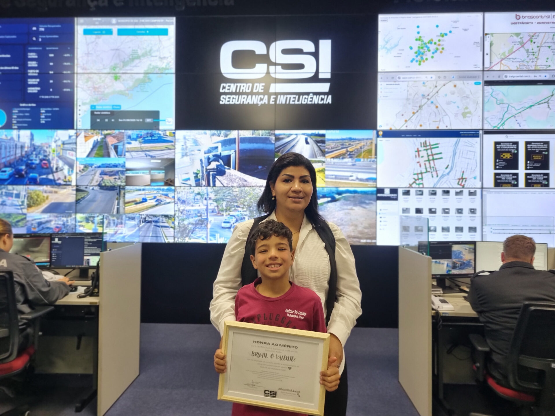 O Centro de Segurança e Inteligência (CSI) de São José dos Campos recebeu na última sexta-feira (1) uma visita para lá de especial. Brian Ricardo Mioni, de apenas 8 anos, foi homenageado com um certificado de coragem após ter sido flagrado pelas câmeras tentando salvar um cãozinho em situação de risco. A cena foi registrada no dia 25 de julho.