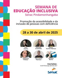 A programação da Semana de Educação Inclusiva pode ser conferida no site: https://eventos.sp.senac.br/evento/semana-senac-de-educacao-inclusiva/