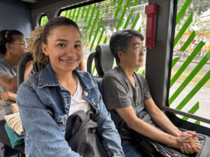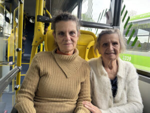 Ana Cristina ao lado da mãe no ônibus | Foto: PMSJC.