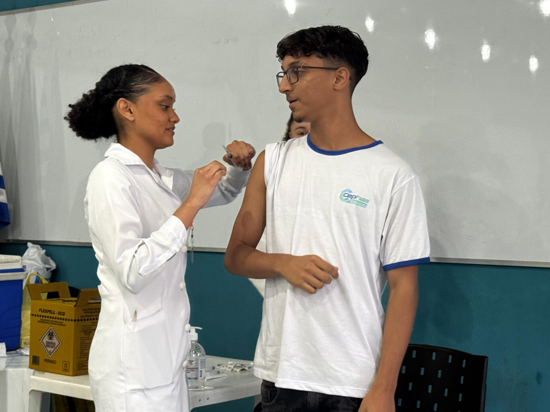 Durante a ação no Cephas, estudantes do curso técnico de Enfermagem aplicaram as vacinas e orientaram os colegas sobre a importância da imunização.