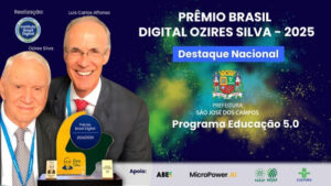 O Programa Educação 5.0 da Prefeitura de São José dos Campos foi reconhecido como Destaque Nacional no Prêmio Brasil Digital Ozires Silva – 2025, uma das principais premiações do país em inovação e transformação digital.