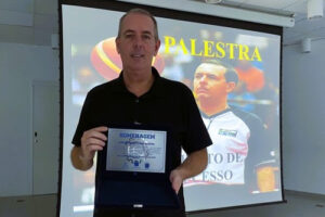 Em formato de bate-papo, Renatinho compartilhou sua trajetória no esporte e falou sobre foco, disciplina e determinação. Ele relembrou o início da carreira ainda muito jovem — o apelido surgiu justamente quando começou a apitar partidas de forma profissional aos 12 anos de idade.
