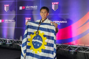 Kenzo Katayama, medalhista nas categorias kata e kumite do Campeonato Paulista | Foto: Divulgação.