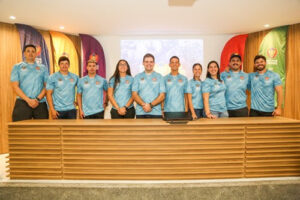 Equipe técnica do São José Rugby com os novos uniformes de treino | Foto: Divulgação/Fabio Lapa.