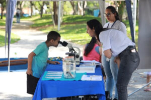 As crianças puderam observar o ciclo de desenvolvimento do mosquito e como prevenir a proliferação| Foto: Claudio Vieira/PMSJC .